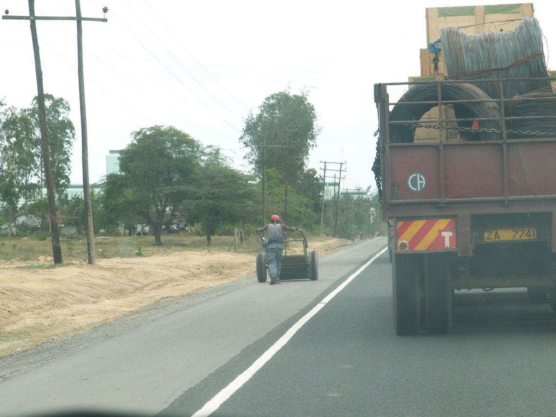 Budget nous fournit un guide (en fait le préparateur de voitures) jusqu'à la route de Nairobi (Mombasa Highway !) qui nous menera au Tsavo.